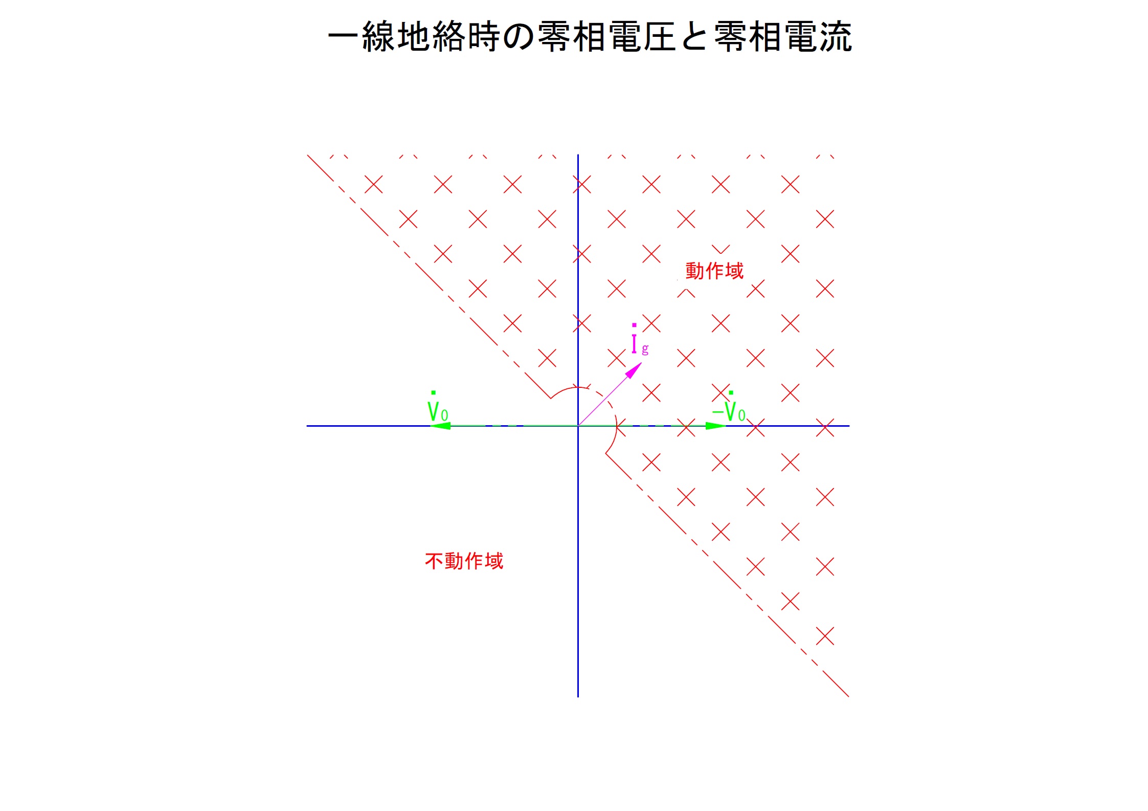 ZPDにより零相電圧が検出され、さらにZCTにて零相電流が検出されたならば、その両者の位相差をみることで地絡が自回線で発生したものか他回線で発生したものかを判別することが可能となります。零相電圧の逆ベクトルに対する電流ベクトルが、正負方向において同一である場合、これを自回線の地絡事故であると判断するということです。